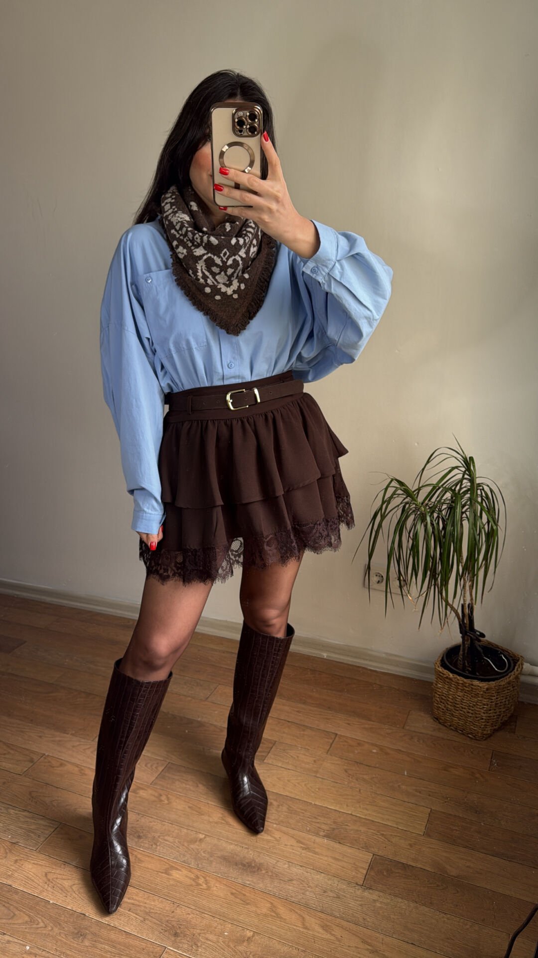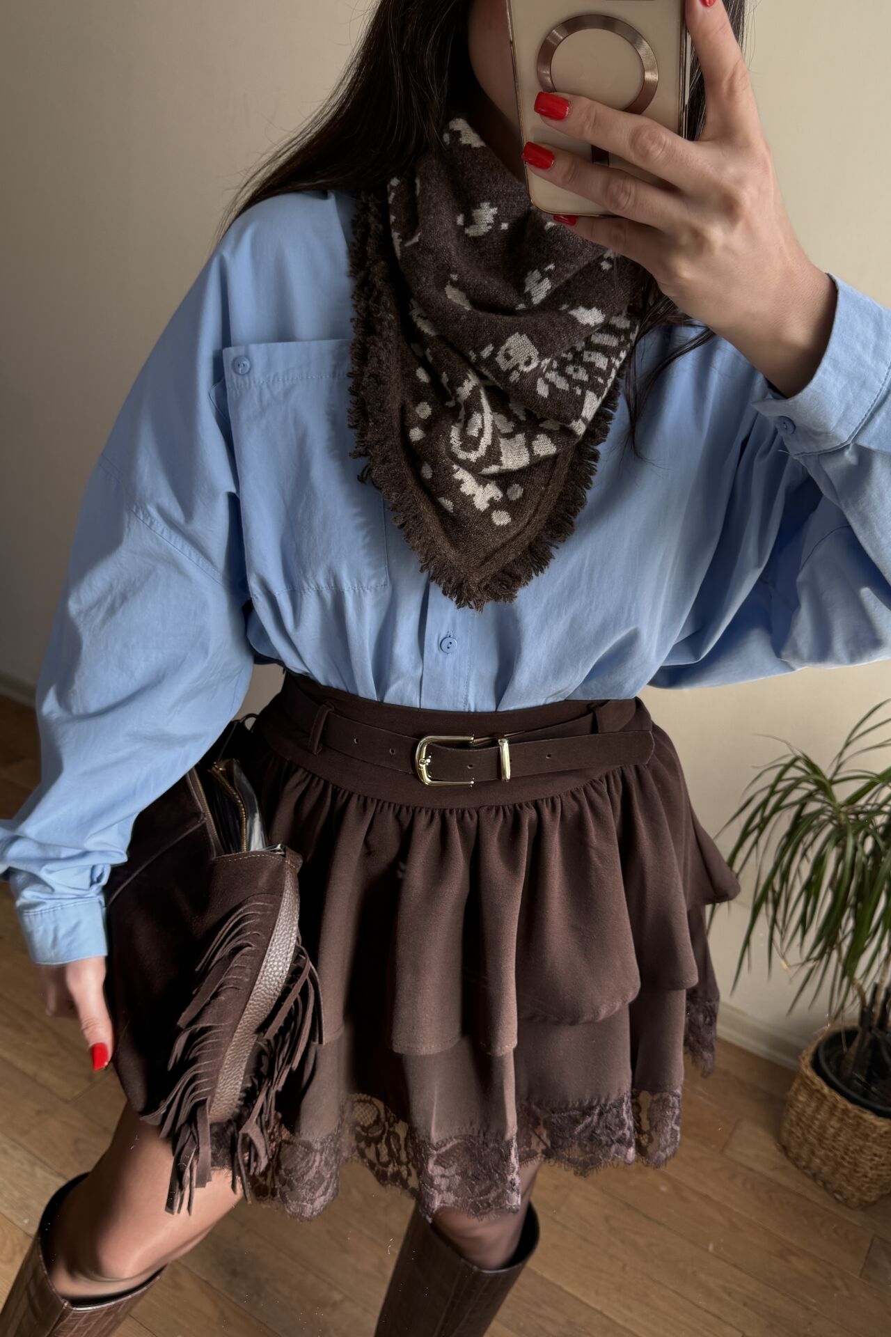Kemer detaylı fırfırlı etek.içi şortsuzdur.bel kısmı fermuarlıdır.etek uçlarında dandet detayı vardır.